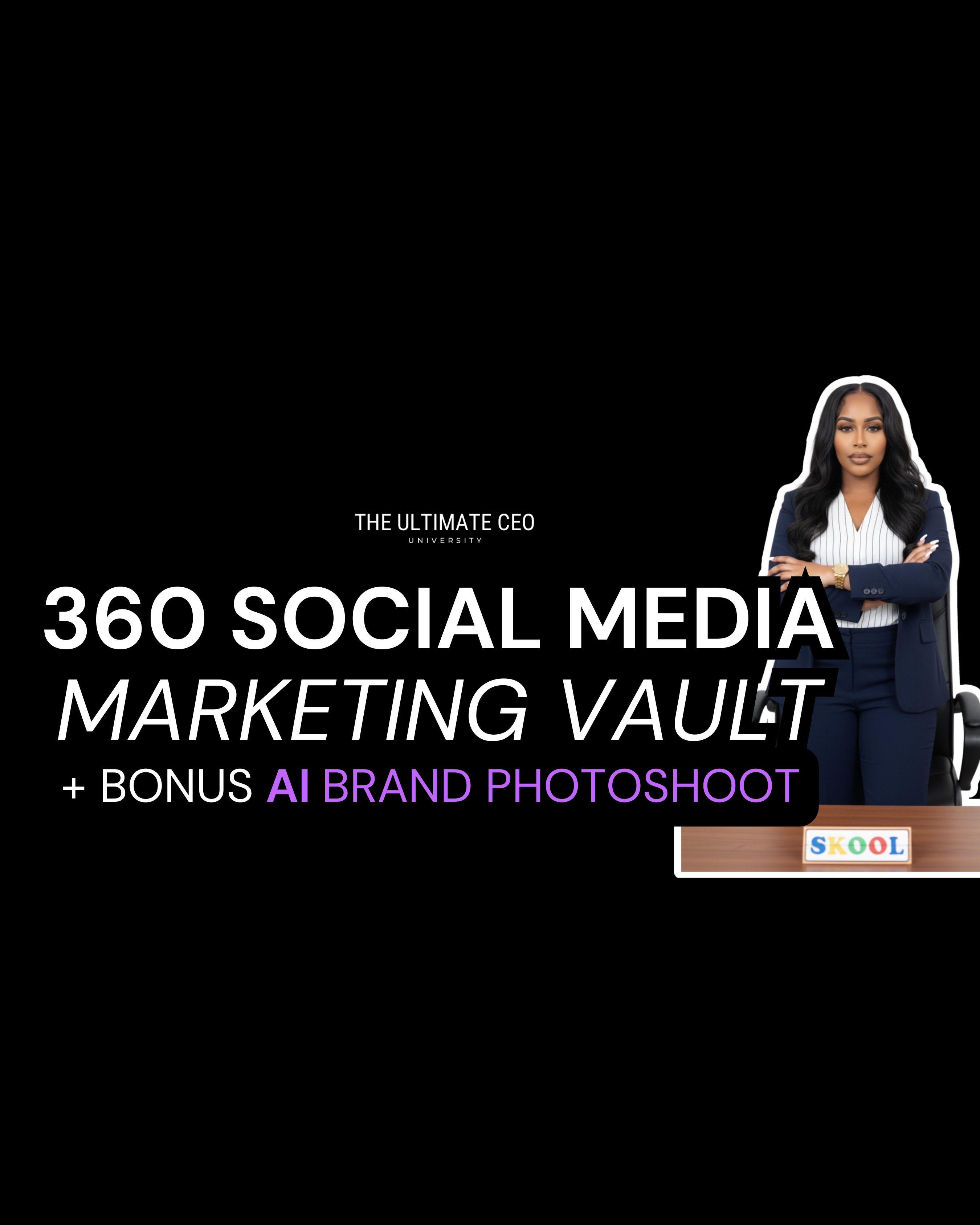Create a polished, professional brand look with AI photoshoot prompts that help you generate high-quality visuals in minutes. Then pair those images with ready-to-use social media templates, captions, and content strategies that make marketing simple and effective. This vault gives you everything you need to show up consistently, look like the CEO you already are, and build a strong, aligned presence across every platform.